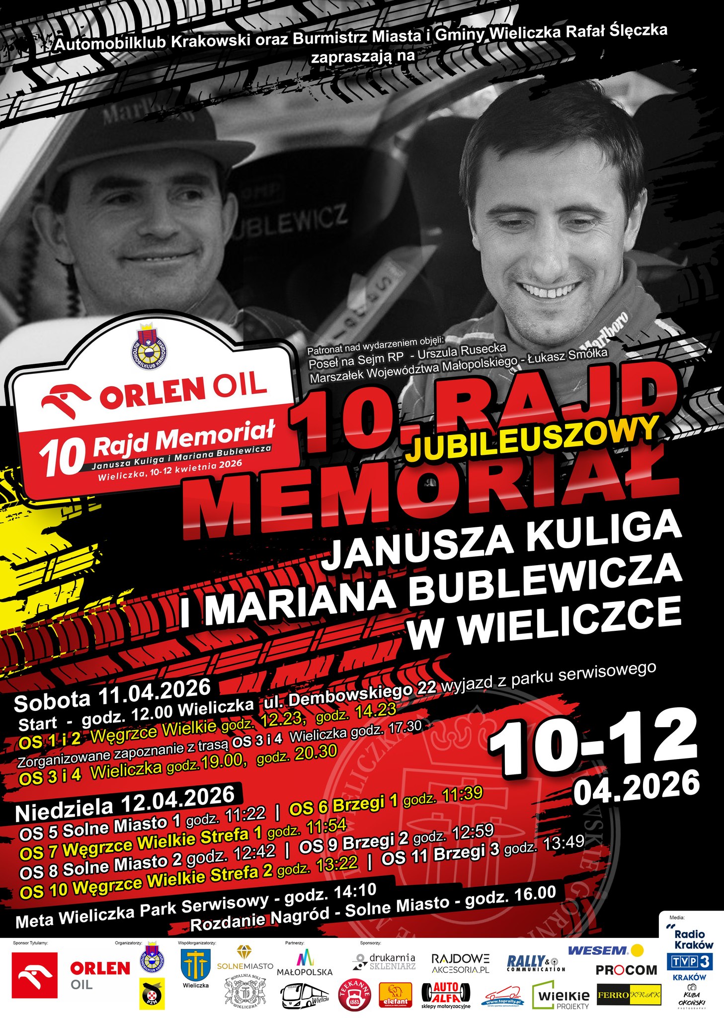Czeka nas jubileuszowy ORLEN OIL 10. Rajd Memoriał Janusza Kuliga i Mariana Bublewicza – wydarzenie, które rokrocznie przyciąga najlepszych kierowców oraz tłumy fanów spragnionych niezapomnianych wrażeń! 🚗💨